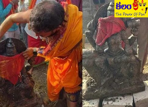 బయటపడ్డ అమ్మవారి విగ్రహం.. ప్రత్యేక పూజలు
